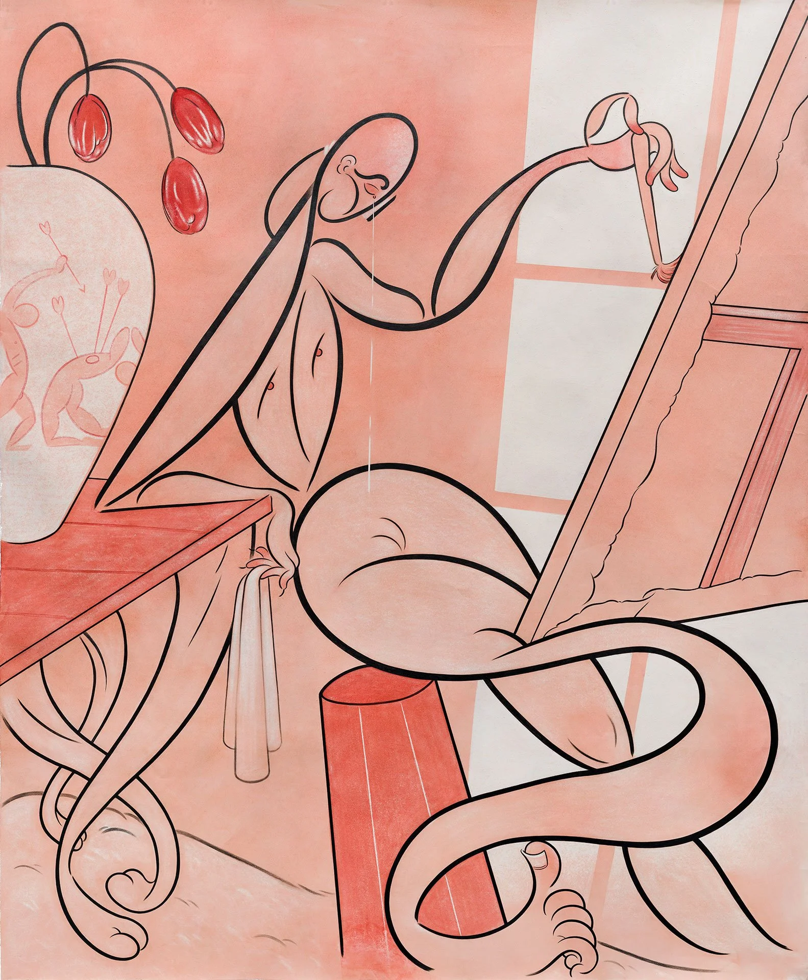 Maybe this is myself being overly honest, but it is an aspect of living in a world that feels as if it moves faster than you are able to breathe. I jump straight into working—whether that’s means going to the studio, where I work on larger pieces, generally with an assistant, or from home, where I work on smaller drawings and I am able to spend time with my cat and partner.